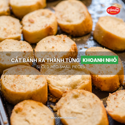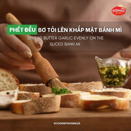 - Dùng muỗng phết bơ tỏi lên khắp mặt bánh mì cho thật đều