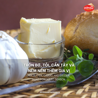 - Trộn bơ, tỏi, cần tây và nêm nếm thêm gia vị vừa ăn
