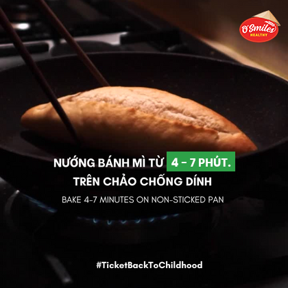 - Để bánh mì O'Smiles vào lò nướng đã được điều chỉnh nhiệt độ từ 210°C - 230°C. Đợi từ 4 đến 6 phút và lấy bánh ra khi đã chuyển màu vàng nâu