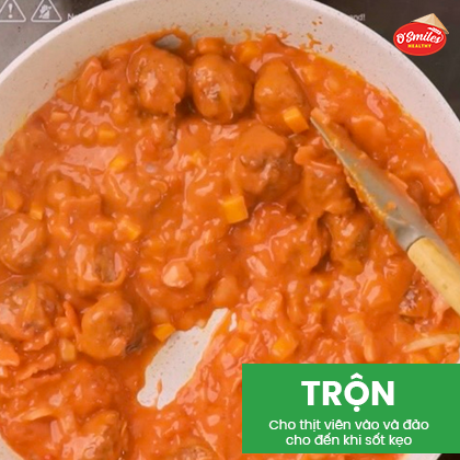 Cho thịt viên vào và đảo cho đến khi sốt kẹo