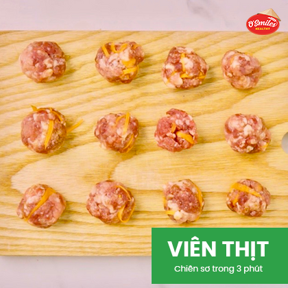 Viên tròn thịt băm thật đều tay sau đó chiên sơ trong 3 phút.