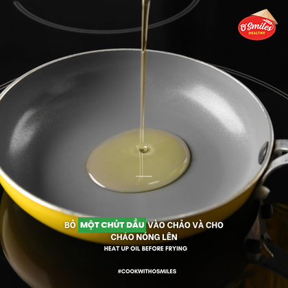 - Bỏ một chút dầu vào chảo và cho chảo nóng lên trước khi đập trứng vào