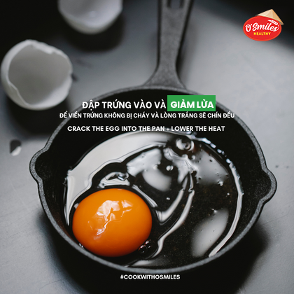 - Khi đã đập trứng vào, nhớ giảm liền xuống lửa nhỏ để viền trứng không bị cháy và lòng trắng sẽ chín đều hơn.