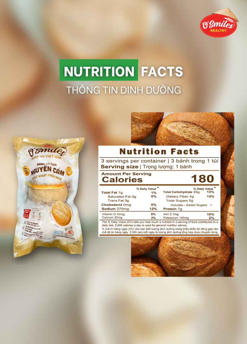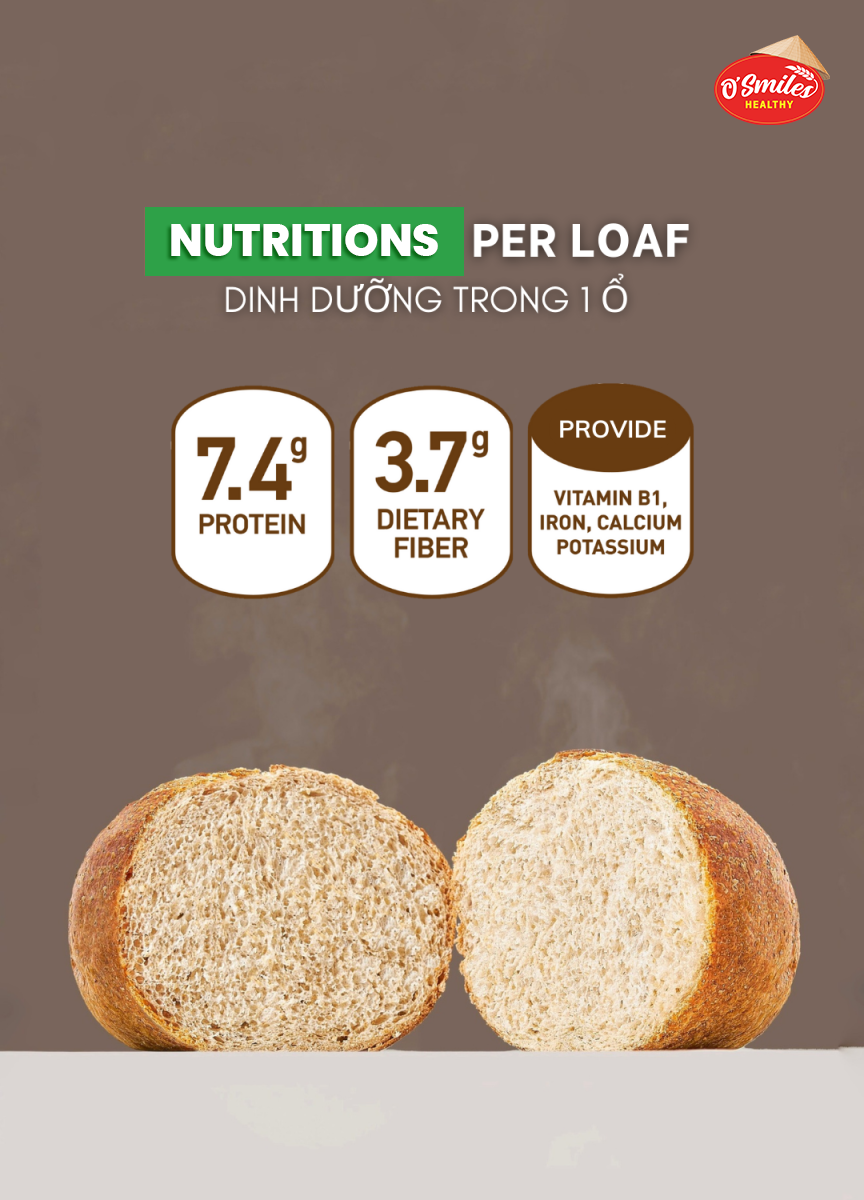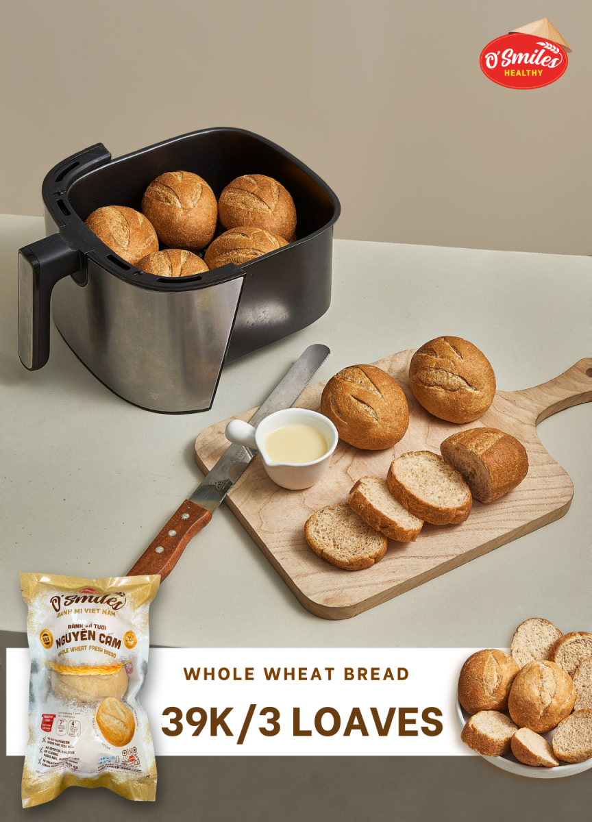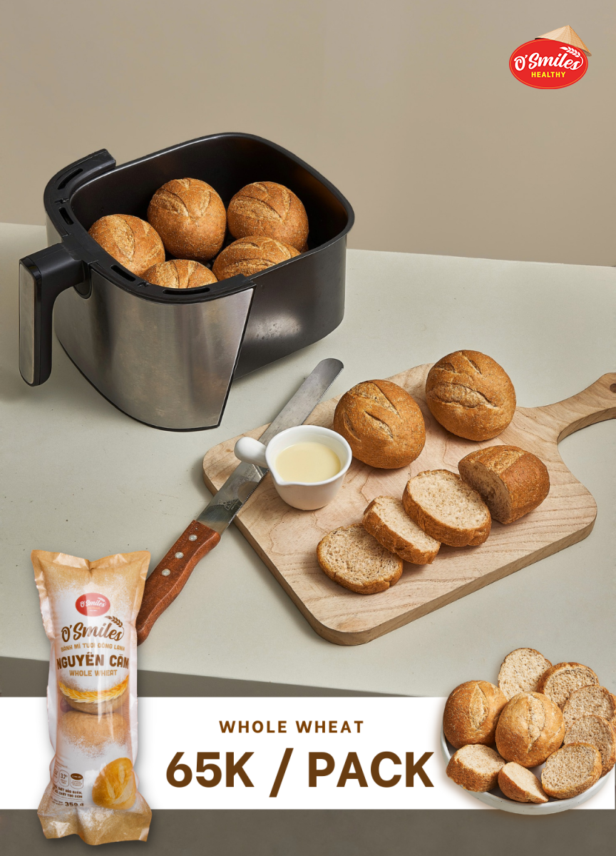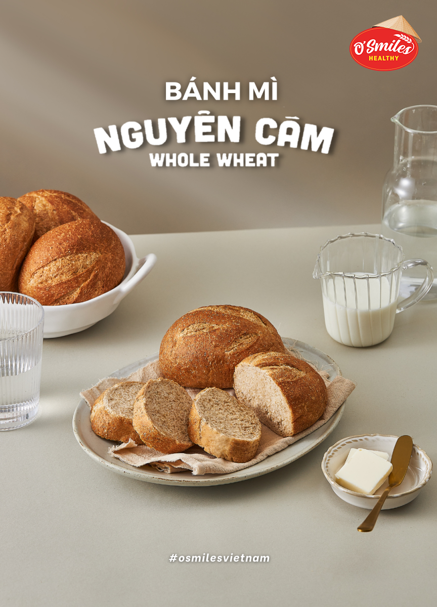 Whole Wheat Banh Mi O'Smiles - Eat Clean and Healthy. With HEALTHY - DELICIOUS - CRISPY - CONVENIENT. Whole wheat bread is made from whole wheat flour, which is a flour milled from whole wheat with bran and germ layers. O'Smiles Whole Wheat Bread retains all the nutrients and original flavor of wheat.