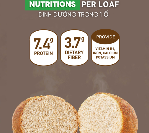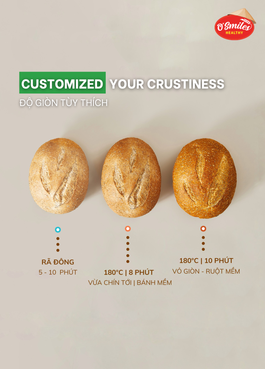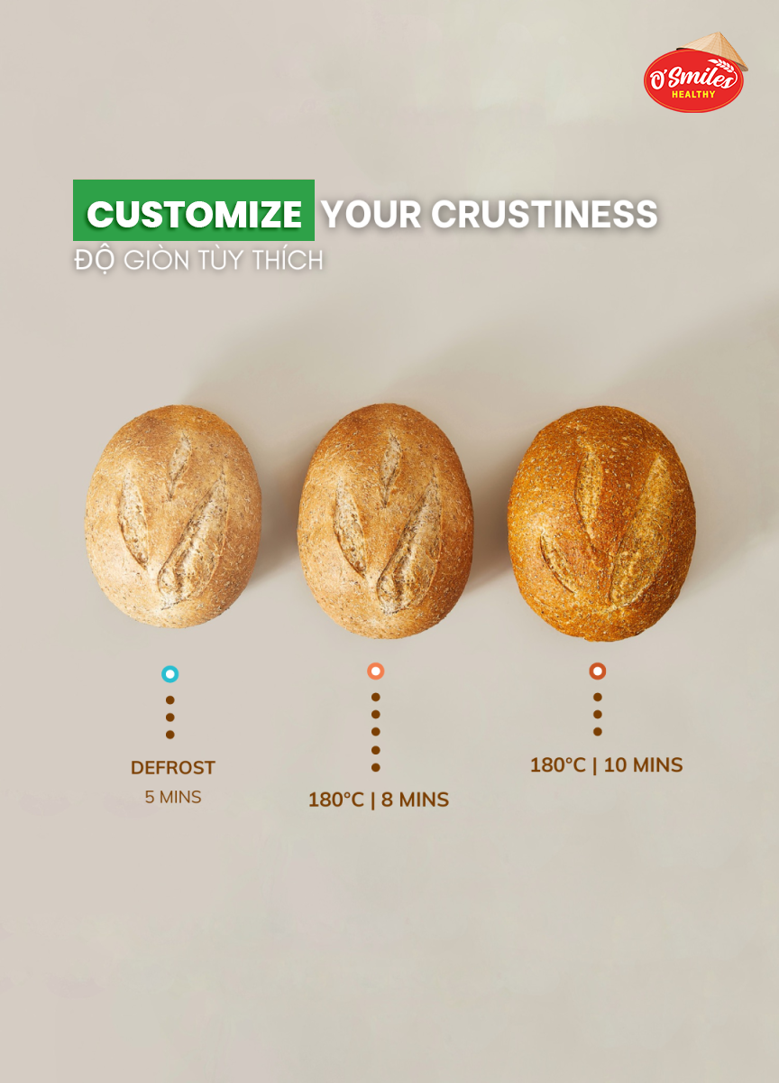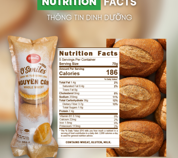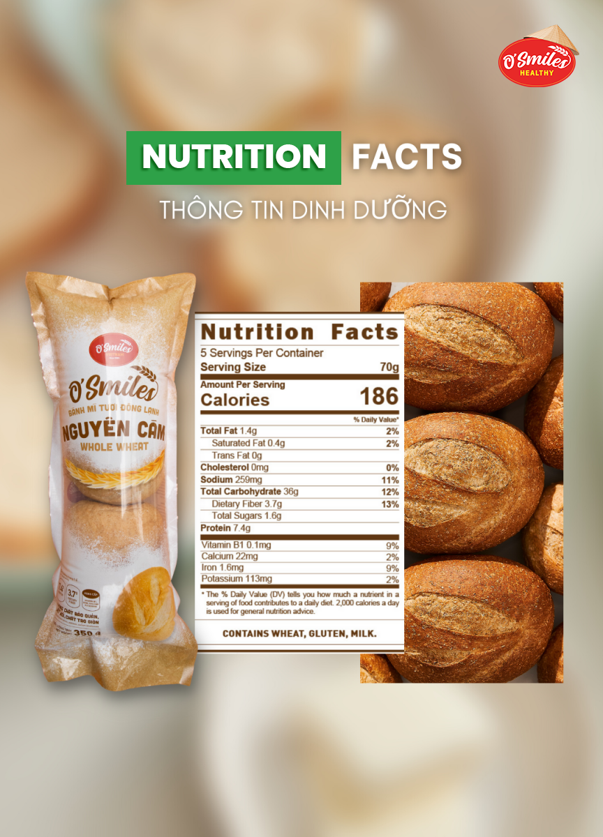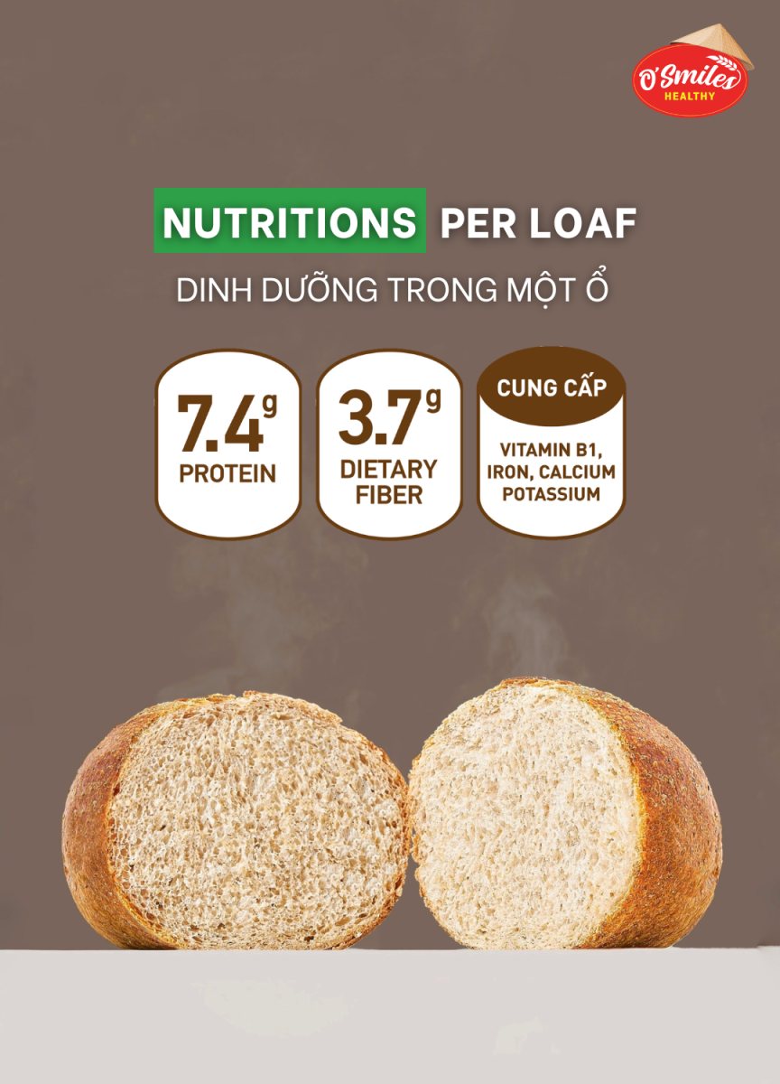 Whole Wheat Banh Mi O'Smiles - Eat Clean and Healthy. With HEALTHY - DELICIOUS - CRISPY - CONVENIENT. Whole wheat bread is made from whole wheat flour, which is a flour milled from whole wheat with bran and germ layers. O'Smiles Whole Wheat Bread retains all the nutrients and original flavor of wheat.